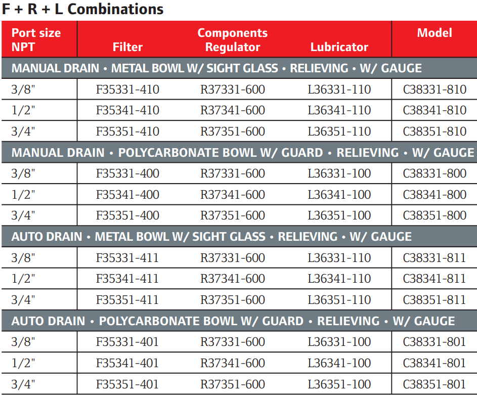 Looking for more information about ARO FRL Combination Units? Click here to view the ARO FRL Catalog