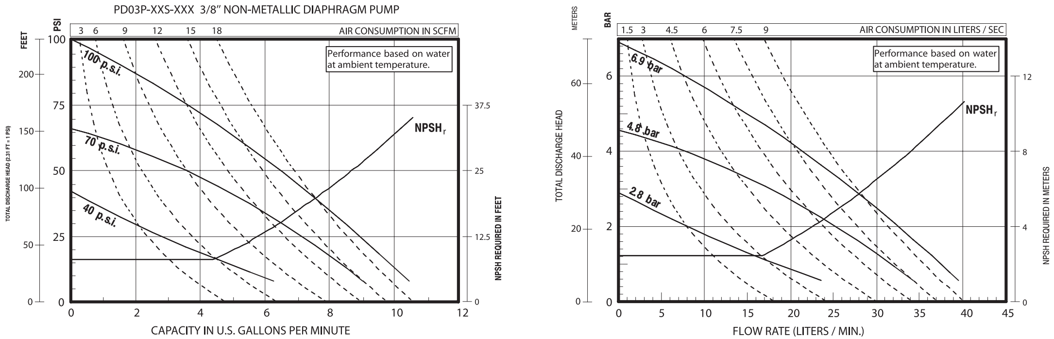 Type: Diaphragm Pump | Max Flow (GPM): 10.6 | Ratio: 1:1 | Air Inlet (Female): 1/4 - 18 PTF SAE Short | Suspended Solids Max Diameter (in.): 1/16 | Manifold Material: Polypropylene (Single port) | Center Section: Polypropylene | Seat Material: Polypropylene | Ball Material: Santoprene | Diaphragm Material: Santoprene