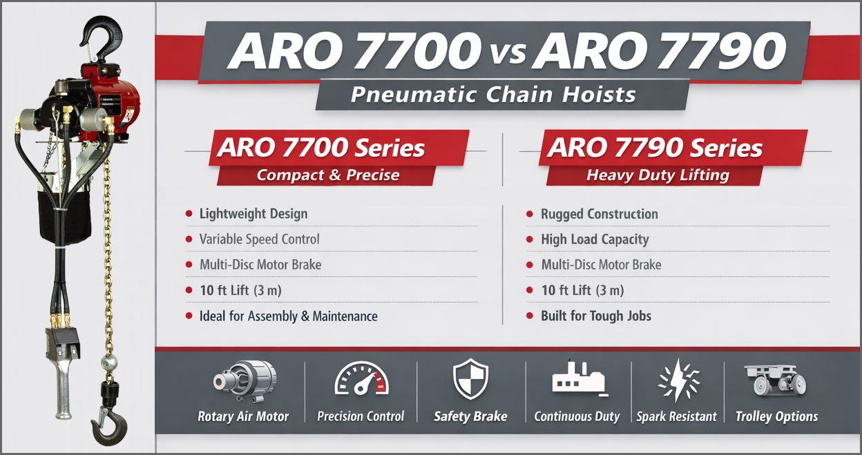 Comparing the Ingersoll Rand ARO 7700 Series and 7790 Series Pneumatic Chain Hoists