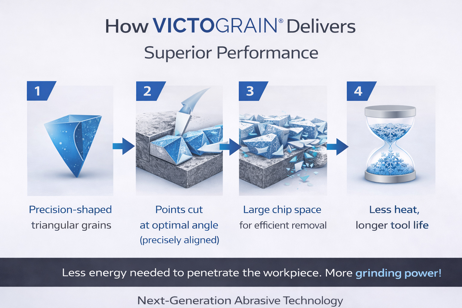 VICTOGRAIN tools are purpose-built for "extremely aggressive grinding," yielding remarkable removal rates.