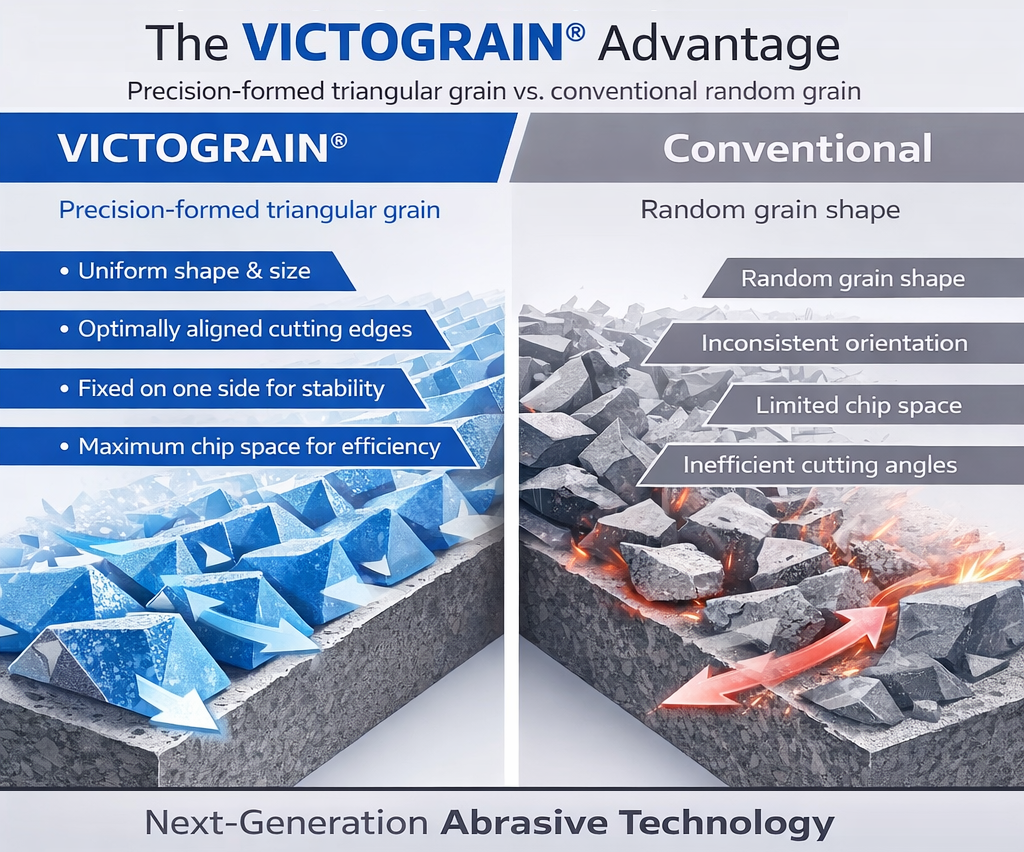 VICTOGRAIN provides clear benefits over traditional abrasives, which quickly lose their edge. They are: