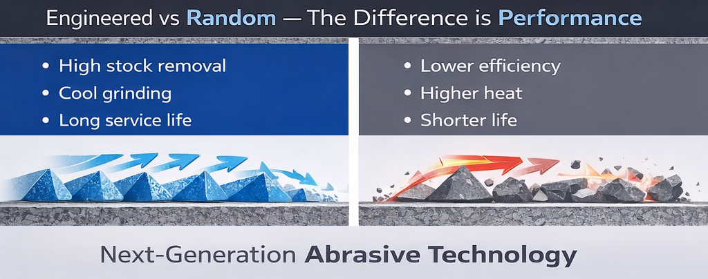 Because the grains fracture in a controlled manner rather than breaking off randomly, the tool stays effective much longer.