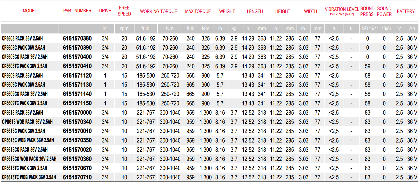 Chicago Pneumatic CP8613 Cordless Torque Wrench is one of the most robust torque wrenches in its class. It is designed to be valuable for various industrial applications and offers excellent mobility and high accuracy to secure the job. This tool delivers excellent performance without compromising on safety. The protection feature includes a second start button and swiveling with an ergonomic handle, enabling operators to achieve a confident grip. Chicago Pneumatic 6151570000 Torque Wrench delivers exceptional mobility and precision for general bolting applications. This Torque Wrench is suitable for bolting applications in the energy, mining, construction, and railway industries. These Torque Wrenches are ideal for use on oil and gas pipelines, wind turbines, heavy-duty vehicles, and off-road equipment. This CP86 Series Cordless Torque Wrench features a long-lasting, compact, and lightweight 36 V / 2.5 Ah battery for extended use.