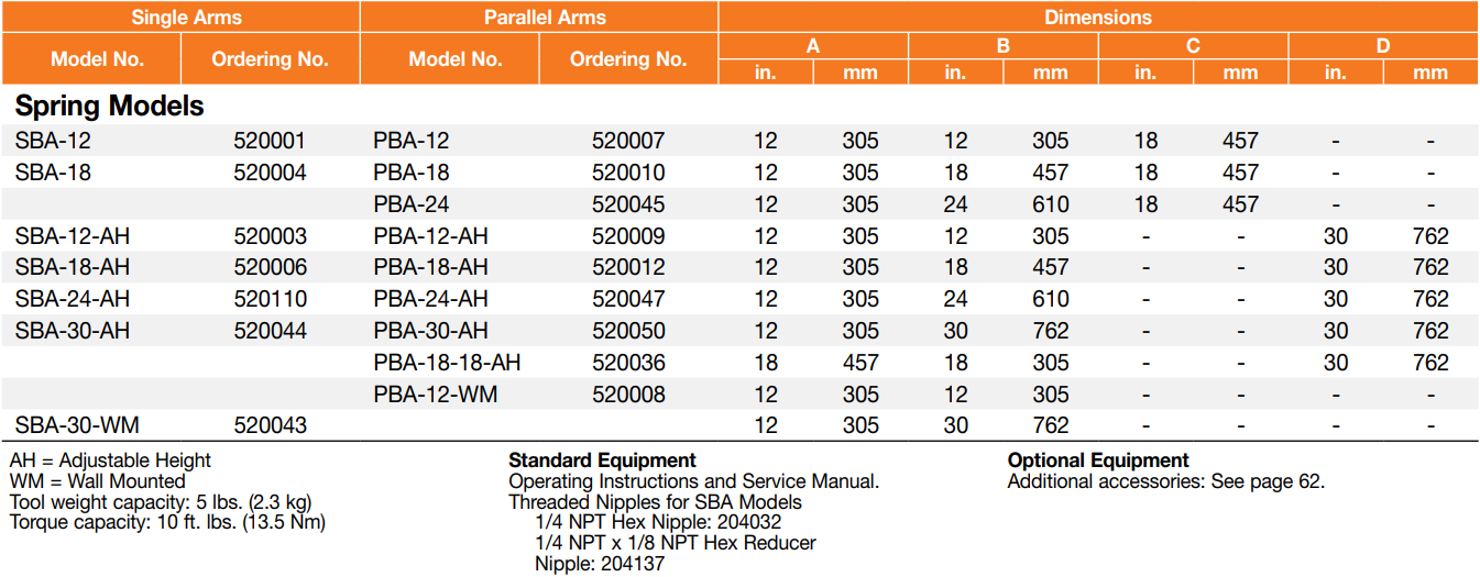 Cleco PBA-18-AH 520012 Parallel Balance Arm - Spring is designed to provide superior performance and durability. This Cleco Pneumatic Spring Balance Arms features ball bearing construction. Engineered to outlast and outperform the competition in the harshest environments, this Cleco Pneumatic Spring Balance Arm, also known as Torque Reaction-Balance Arm, supports tools weighing up to 5 lbs. It also features post, wall, or adjustable height post mounting.