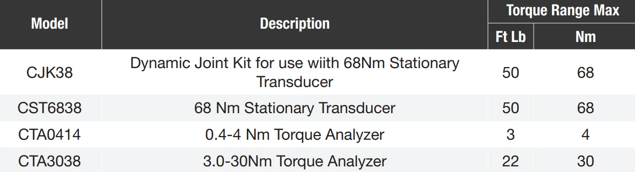 - Range can be expanded with optional 68NM transducer and rundown kit - suitable for 4Nm and 30Nm analyzer