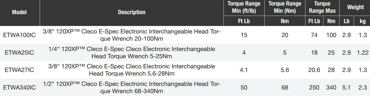 Cleco ETWA27IC Advanced Electronic Torque Wrench, your essential tool for precise torque applications. With a torque range spanning from 4.1 to 20.6 ft-lbs, this wrench offers the perfect balance of power and finesse for a variety of tightening tasks. Equipped with a 3/8" output drive, the Cleco ETWA27IC provides compatibility with a wide array of sockets and attachments, ensuring versatility in your projects. Featuring advanced electronic technology, this torque wrench guarantees consistent torque output with every use, minimizing the risk of under or over-tightening. Its intuitive controls and ergonomic design make operation comfortable and straightforward, reducing fatigue during prolonged use.
