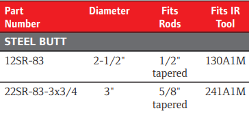 Type: Steel Butt | Diameter (in.): 2-1/2 | For use with: 1/2" Tapered Rod | For use with IR Model: 130A1M