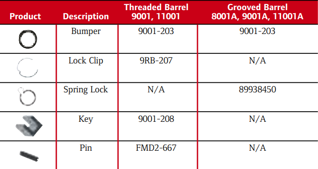 Type: Key | Barrel Type: Threaded Barrel | For Use with Model: Threaded Barrel 9001, 11001