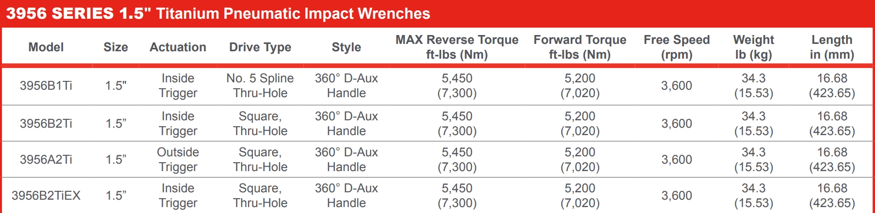Introducing the Ingersoll Rand 3956A2Ti Super Duty Impact Wrench – the latest innovation in renowned 3900 Series. Built for industrial-grade performance, this impact wrench features a titanium hammercase and bronze end plates, ensuring exceptional durability. With a staggering torque of up to 5,450 ft-lbs (7300 Nm), it effortlessly powers through the toughest projects.