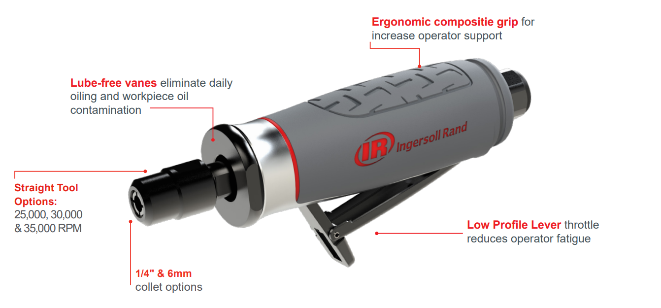 For help choosing the correct Ingersoll Rand Straight Die Grinders, please call (800) 608-5210 or email info@intlairtool.com