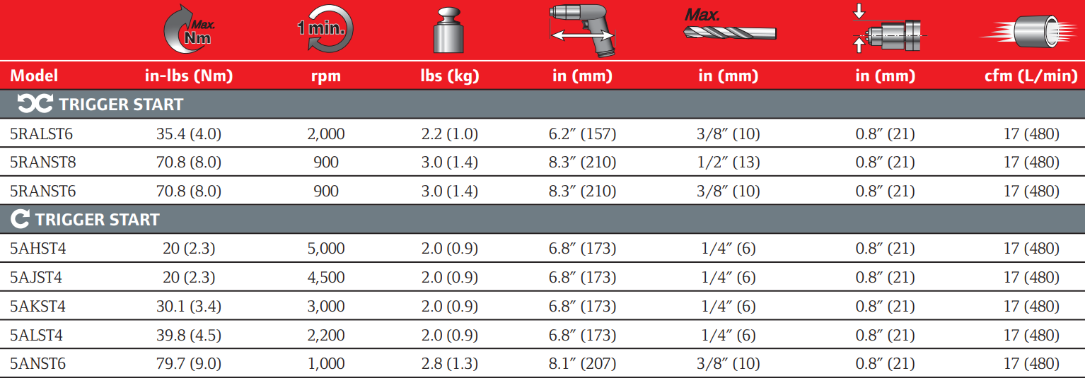 Built for industrial environments, the 5RALST6 features rugged construction and a design optimized for extended use in fabrication shops, automotive repair facilities, manufacturing plants, and maintenance workshops. Whether you’re working on production drilling, assembly line tasks, or heavy-duty repair work, this pneumatic drill delivers consistent performance and long-lasting durability.
