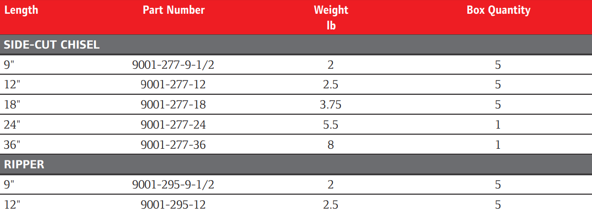 Type: Ripper Chisel | Length (in.): 12 | Material: Steel