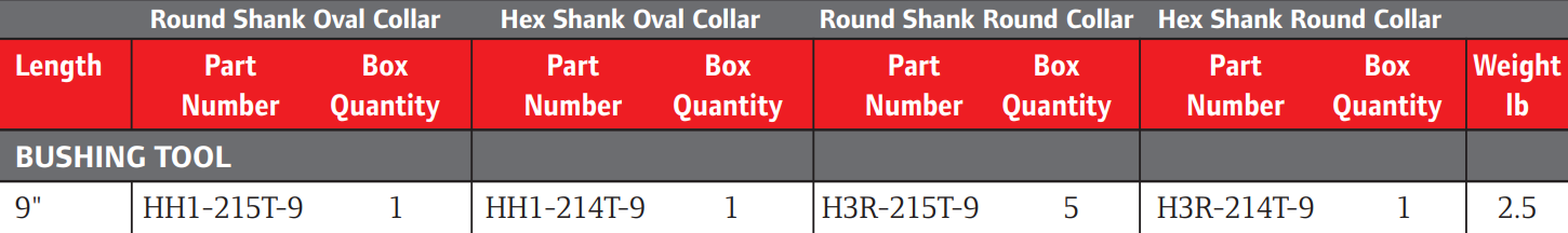 Type: Bushing Tool | Length (in.): 9 | Material: Steel