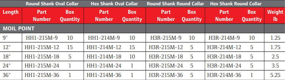 Type: Moil Point | Length (in.): 9 | Shank Size (in.): 0.68 | Shank Style: Round | Collar Style: Round | Material: Steel