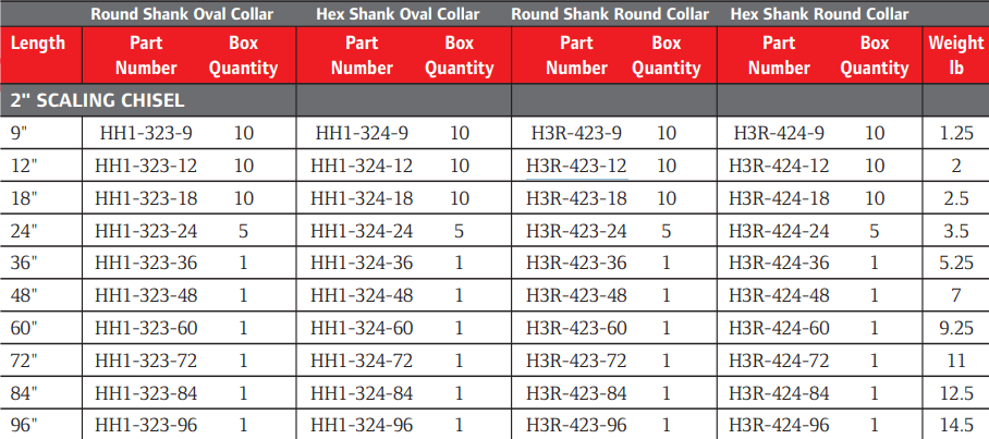 For help choosing the correct Ingersoll Rand Scaling Chisels for your application, please call (800) 608-5210 or email info@intlairtool.com