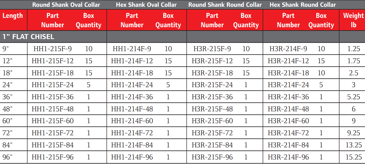 For help selecting the correct Ingersoll Rand Flat Chisels, please call (800) 608-5210 or email info@intlairtool.com