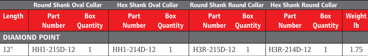 Type: Diamond Point | Length (in.): 12 | Material: Steel