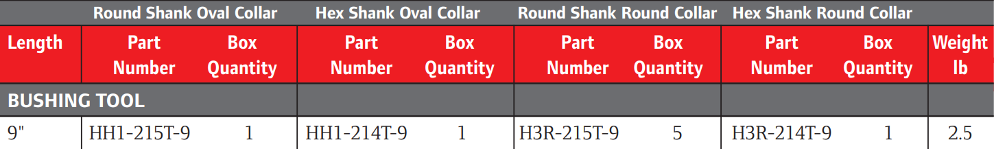 Type: Bushing Tool | Length (in.): 9 | Material: Steel