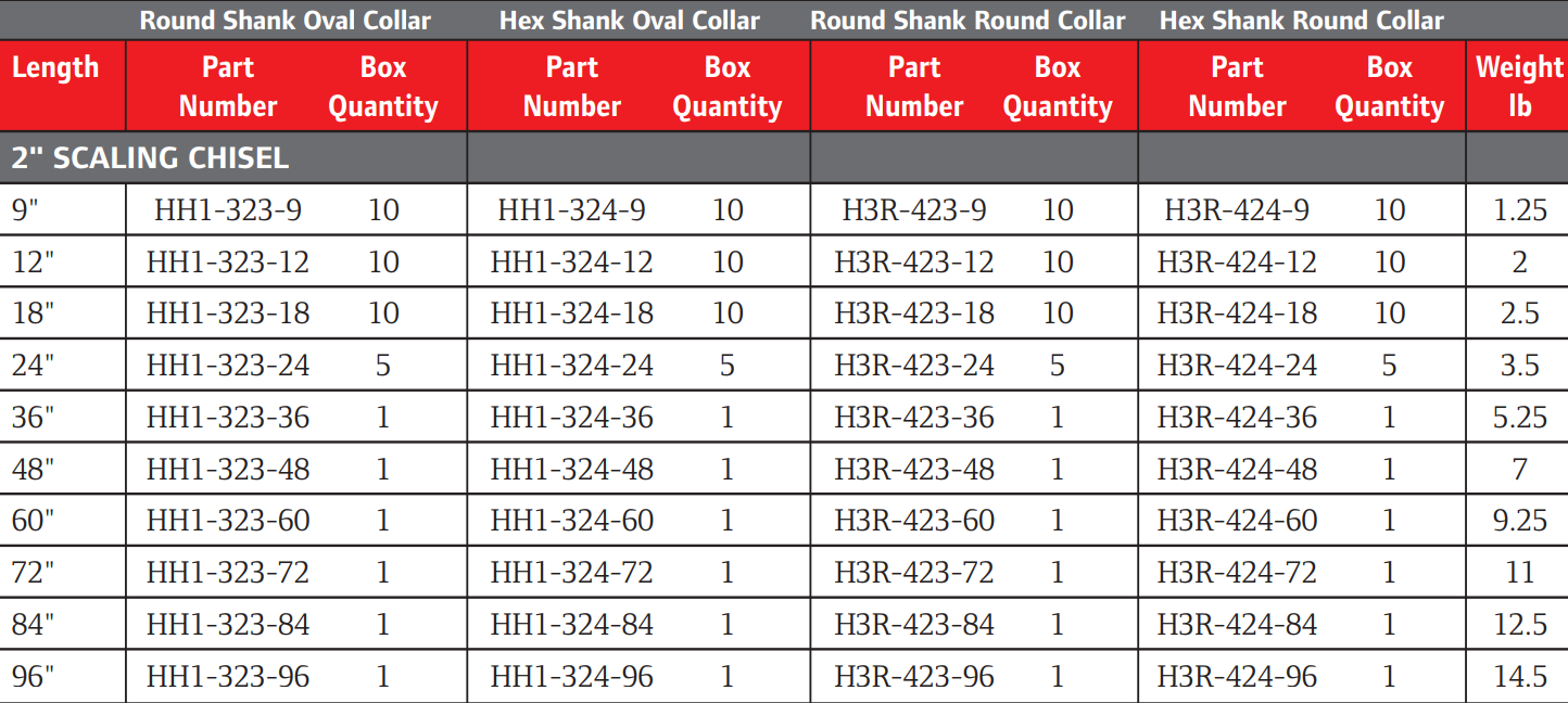 In continuation of the tradition, the Ingersoll Rand HH1-324-9 2" Scaling Chisel is made of high quality steel. Designed to use with the Ingersoll Rand Chipping Hammers, the HH1-324-9 2" Scaling Chisel is in line with Ingersoll Rand promise of offering Durability, Productivity and Versatility to its users.