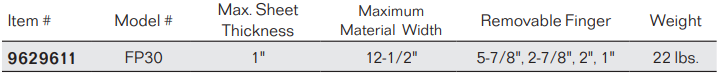 Type: Brake Attachment | Includes: Vise | Max. Sheet Thickness (in.): 1 | Max. Material Width (in.): 12-1/2 | Removable Finger (in.): 5-7/8, 2-7/8, 2, 1