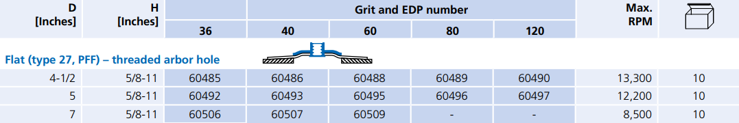 Type: Polifan Flap Disc | Diameter (in.): 4-1/2 | Arbor Hole (in.): 5/8-11 | Series: Z PSF EXTRA STEELOX | Grit: 60 | Disc Type: Flat (Type 27, PFF) | Arbor Hole Type: Threaded | RPM: 13300 | Abrasive Material: Zirconia Alumina Z | __quantity: 10