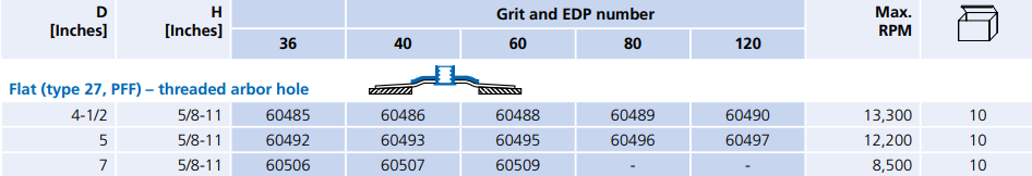 Type: Polifan Flap Disc | Diameter (in.): 4-1/2 | Arbor Hole (in.): 5/8-11 | Series: Z PSF EXTRA STEELOX | Grit: 60 | Disc Type: Flat (Type 27, PFF) | Arbor Hole Type: Threaded | RPM: 13300 | Abrasive Material: Zirconia alumina Z | __quantity: 10