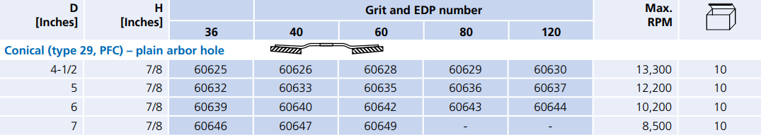 Type: Polifan Flap Disc | Diameter (in.): 5 | Arbor Hole (in.): 7/8 | Series: Z PSF EXTRA STEELOX | Grit: 120 | Disc Type: Conical (Type 29, PFC) | Arbor Hole Type: Plain | RPM: 12200 | Abrasive Material: Zirconia Alumina Z | __quantity: 10