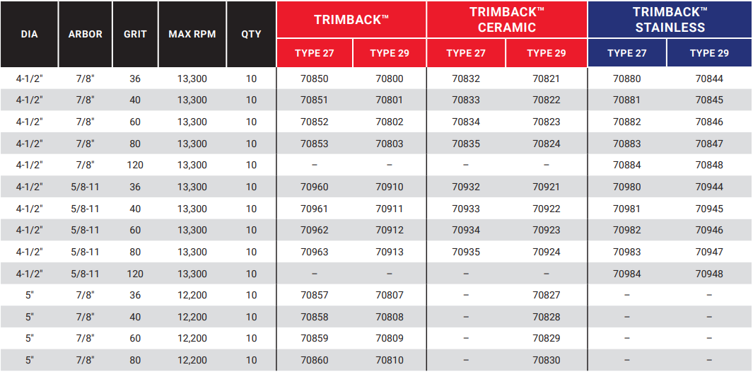 - Only the TrimBack™ line of flap discs are able to be trimmed to expose more abrasive overhang