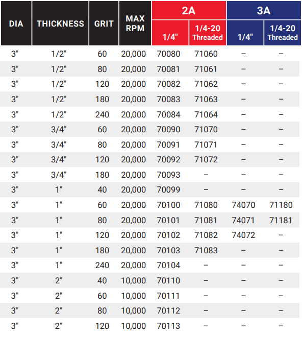 Type: Flap Disc | Abrasive Material: Aluminum Oxide | Diameter (in.): 3 | Mandrel Size (in.): 1/4-20 | Grit: 180 | Max RPM: 20000 | Thickness (in.): 1/2 | Box of: 10 | __quantity: 10